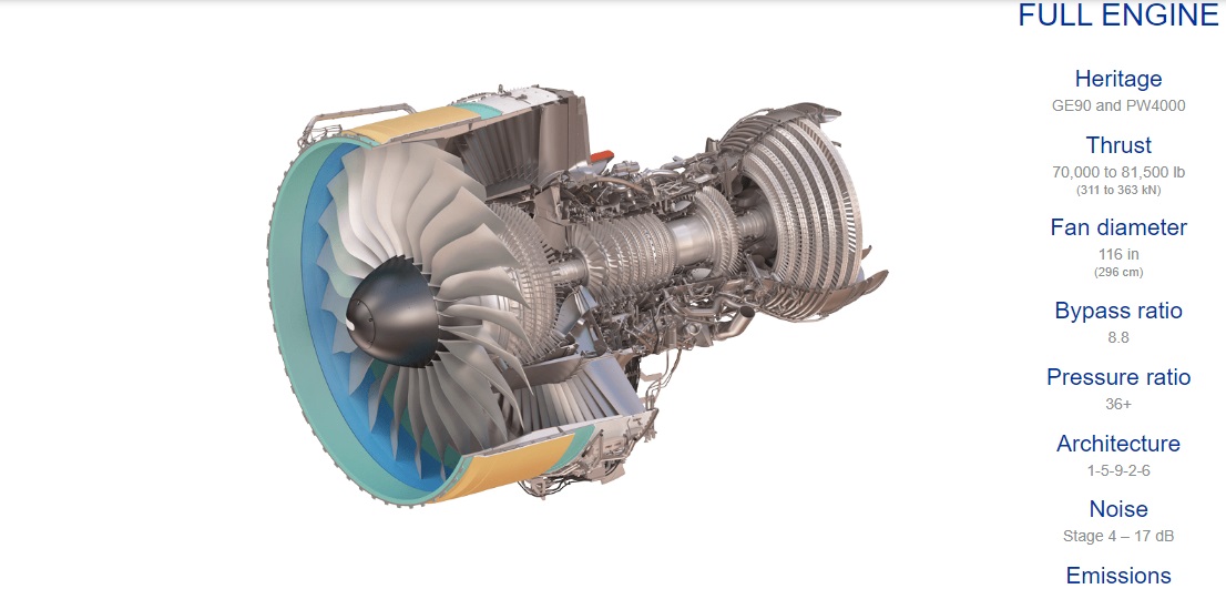 - It is built around an 0.72 scale of the GE90-110B/115B core and contains a Pratt & Whitney fan and low-pressure system design