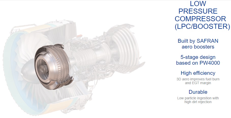 - Safran with 17.5% designs and produces the low-pressure compressor