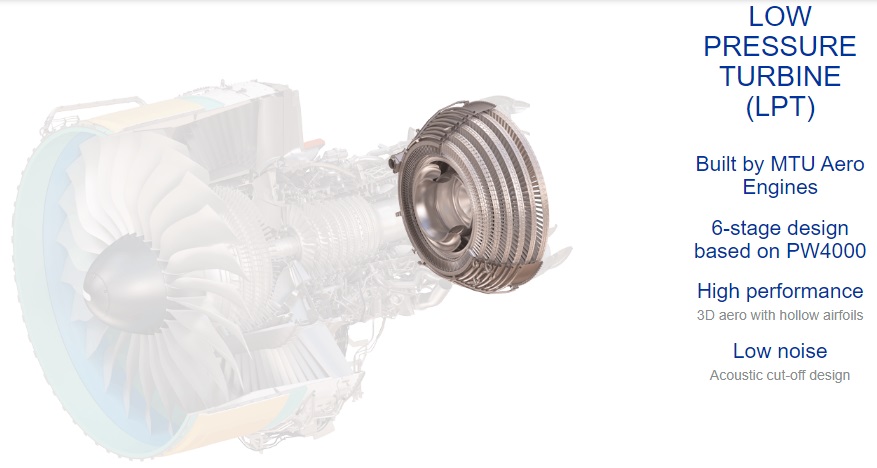 - The German company produces the high-pressure turbine, the low-pressure turbine and the turbine center frame