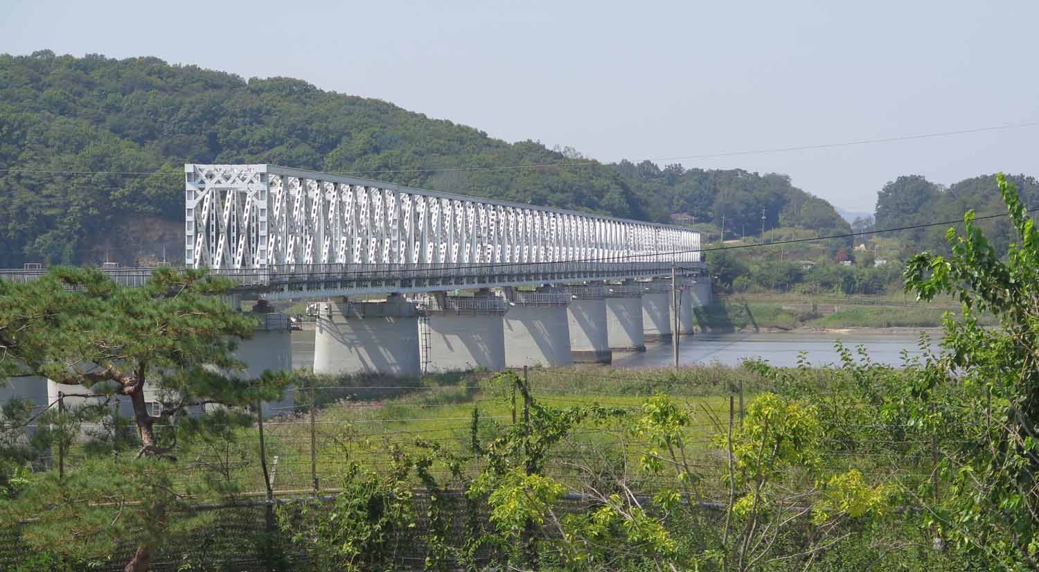 Bridge of Freedom with North Korea on the other side.The Bridge of Freedom connects North and South Korea, though a massive barricade blocks entry to the connecting point over the river. If the two sides are ever connected, this bridge could be used to enter and exit North Korea